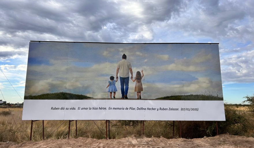 La obra se encuentra en uno de los accesos a la localidad y comenzó a verse en las últimas horas. Fue impulsada por familiares y amigos con el objetivo de mantener vivo el recuerdo de las víctimas y del gesto solidario de Salazar, quien intentó rescatar a las niñas en medio del desastre climático.